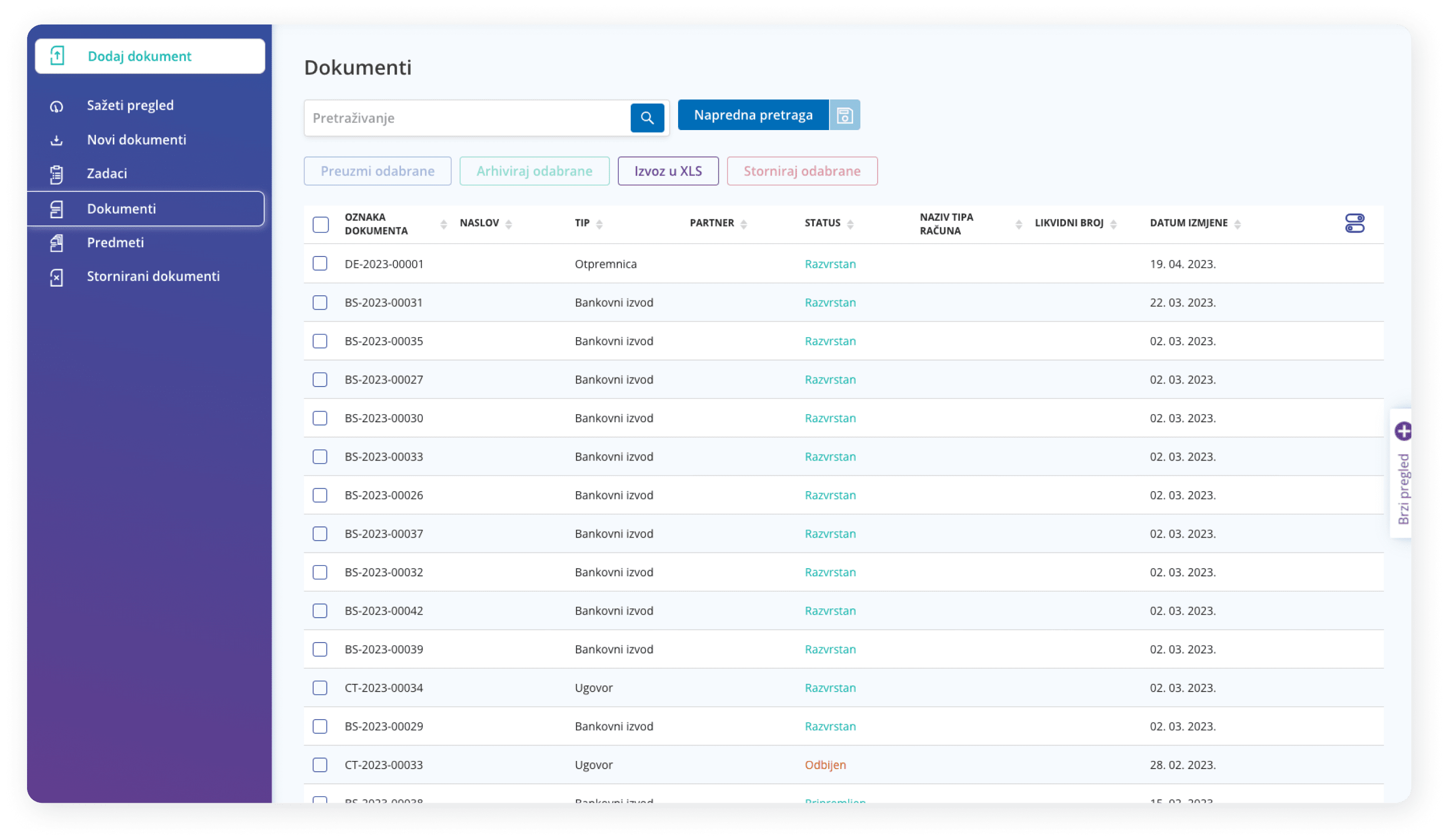 Sustav omogućuje digitalno arhiviranje dokumenata s pregledom arhiviranih dokumenata. Prilikom arhiviranja, dokumenti se digitalno potpisuju i generira se vremenska oznaka.